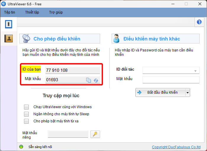 UltraViewer chỉ cho phép truy cập khi bạn cung cấp Password